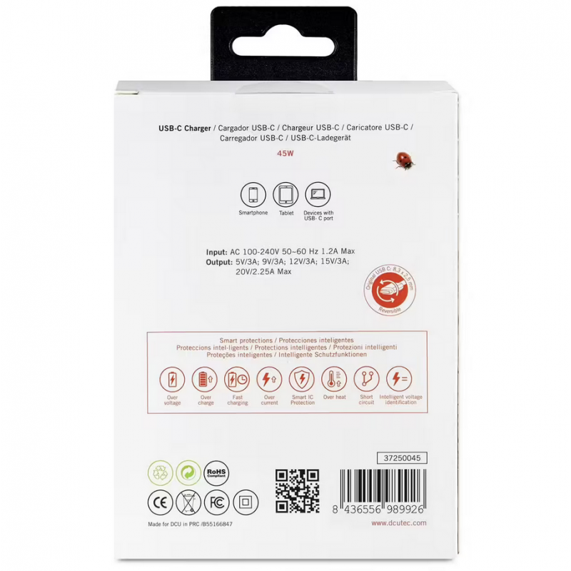 Chargeur Notebook USB Type C 45W 1.8m - Compatible Macbook/ Acer/ ASUS..- DCU 37250045